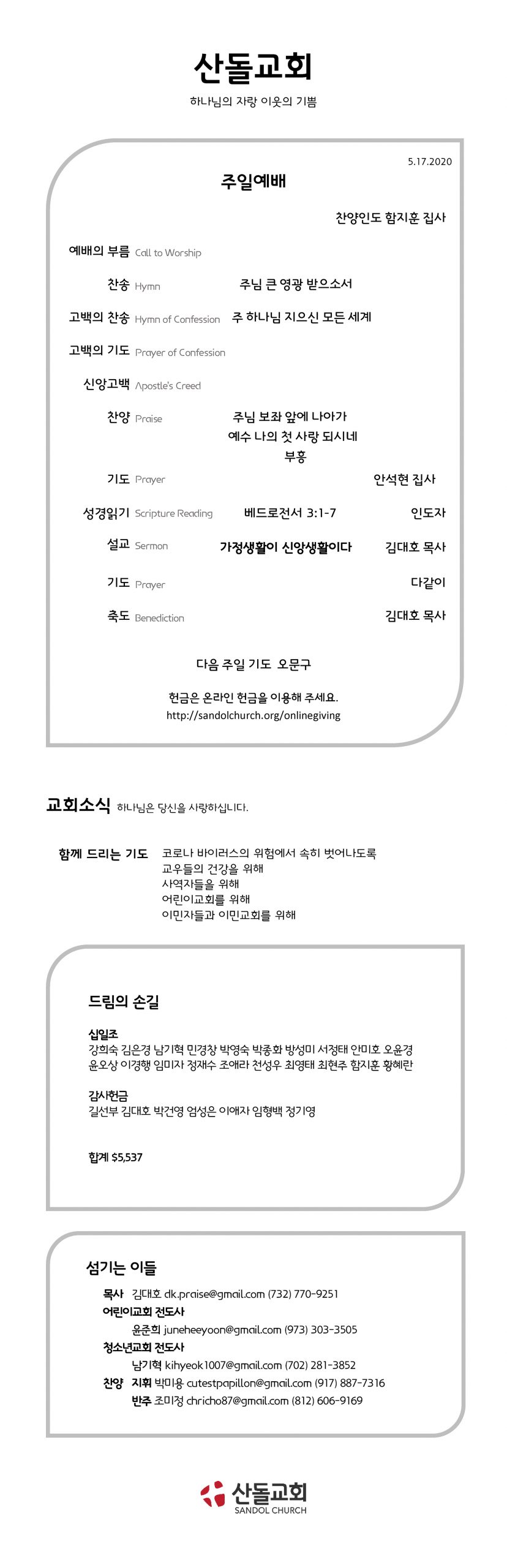 5월 17일 온라인예배주소와 주보